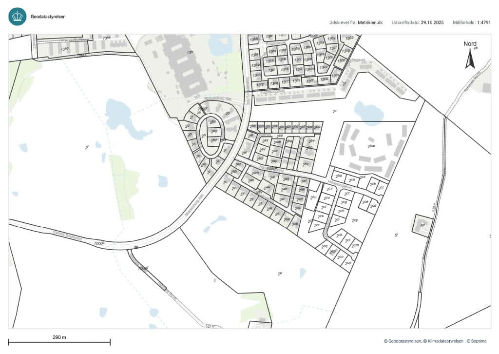 Her et billede af udstykningerne Maribo, øverst vores dobbeltgrund 2ba, nederst en oversigt over nærområde